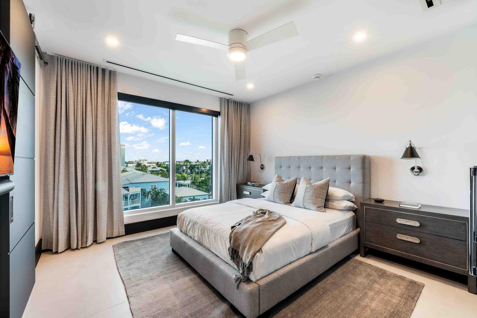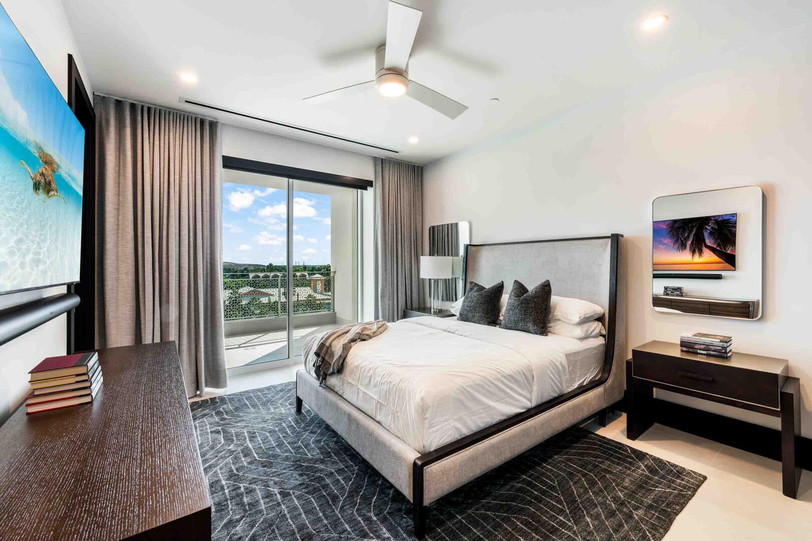 Bedroom 4 with queen bed, SmartTV, and walkout access to the land-side balcony.
