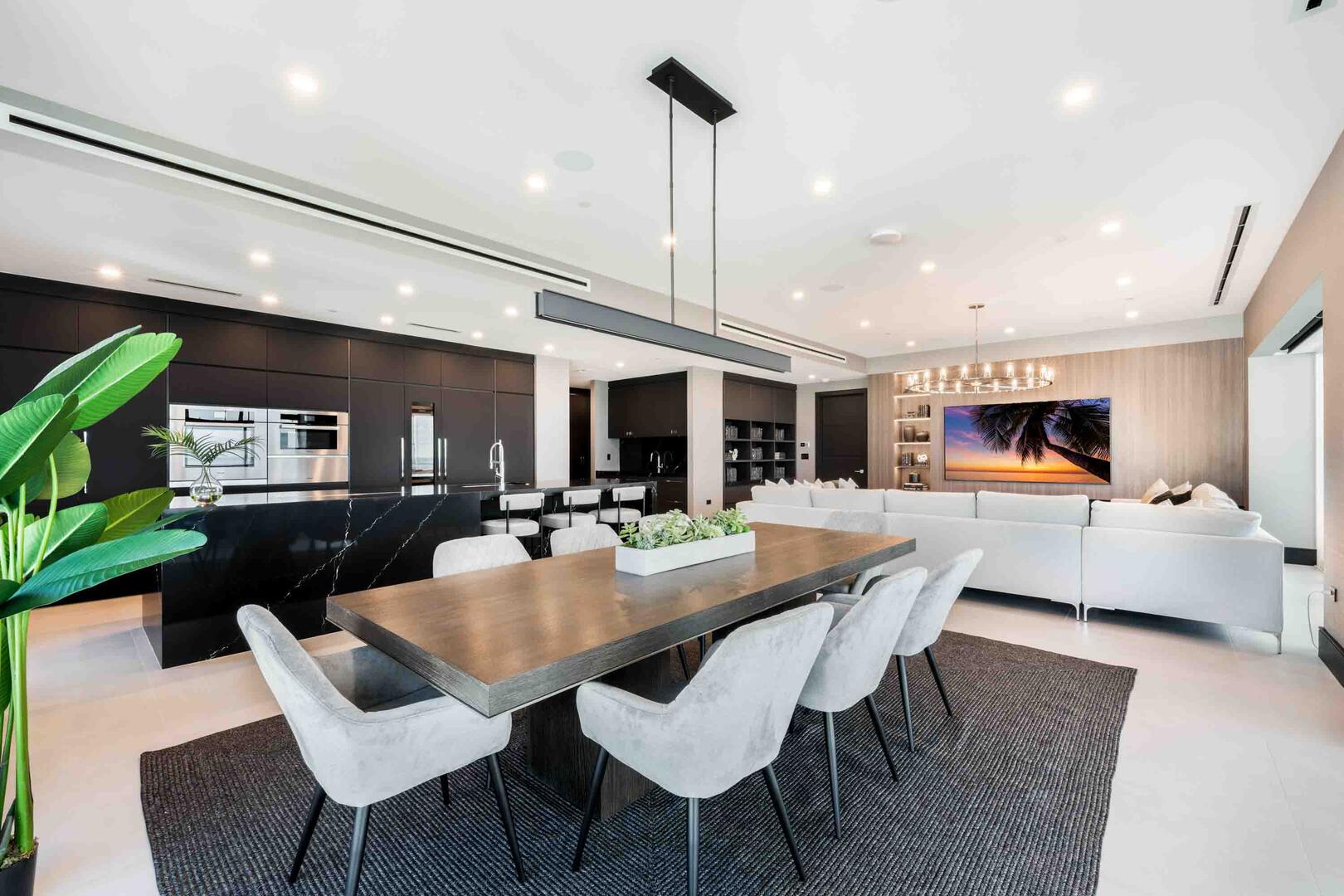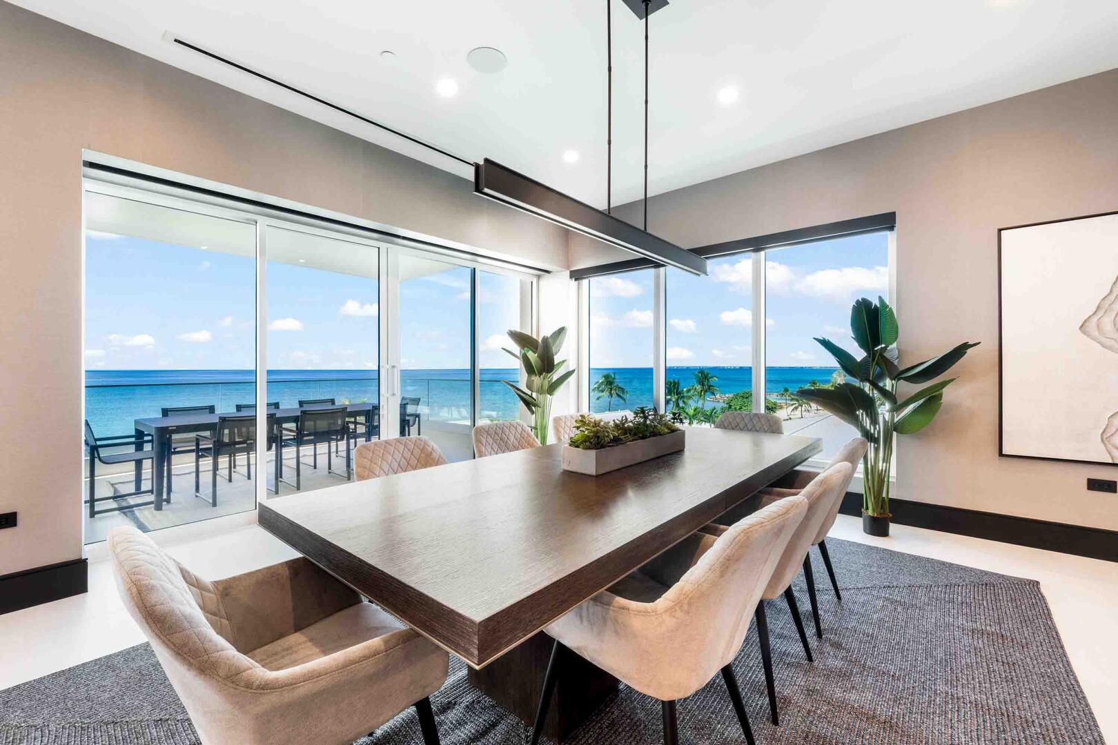The heart of the home is a gourmet chef’s kitchen, fully equipped with Miele and Sub-Zero appliances, custom cabinetry, a wine bar, and elegant quartz countertops. The adjacent oceanfront dining area comfortably seats 8-10 guests with mesmerizing views. For a more indulgent affair, arrange for a private chef to prepare a gourmet dinner or a champagne brunch, curated through our dedicated concierge service.